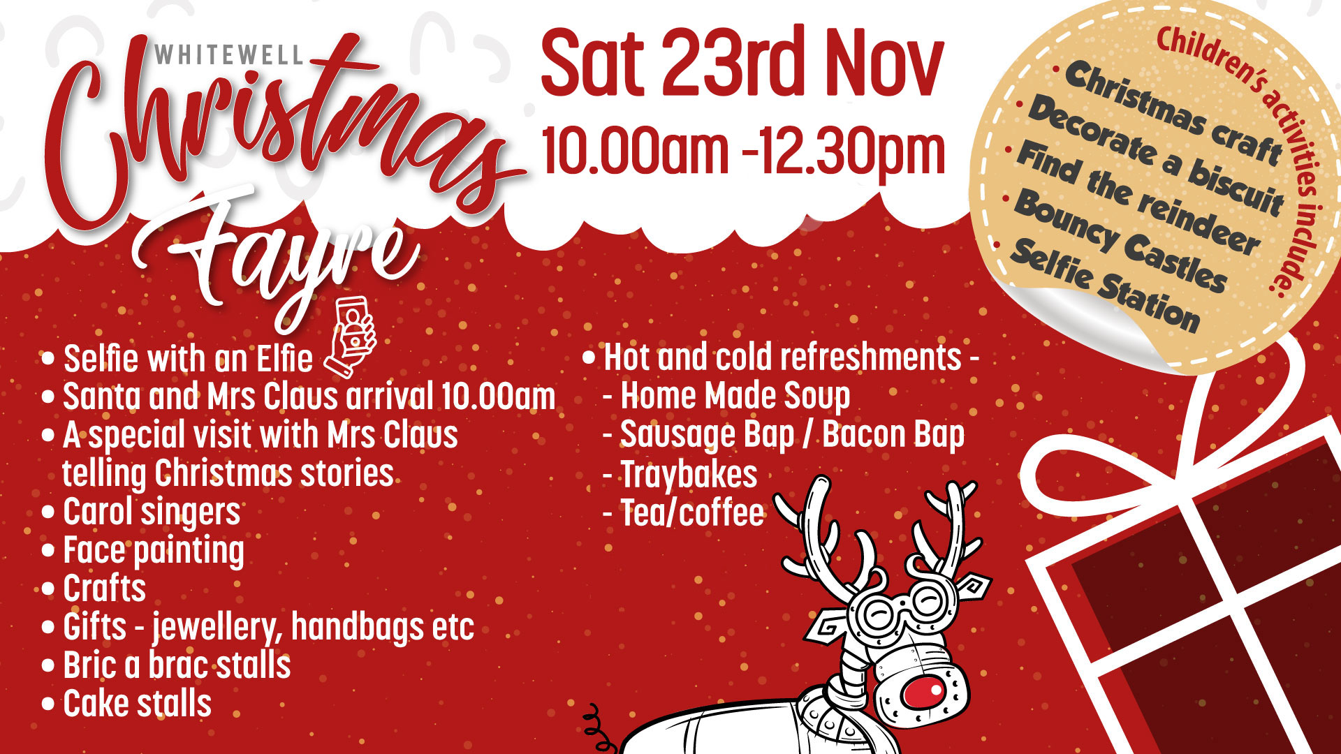 Christmas is getting close and on Saturday 23rd November, our annual Christmas Fayre is taking place in the Youth Complex from 10:00am - 12:30pm.
